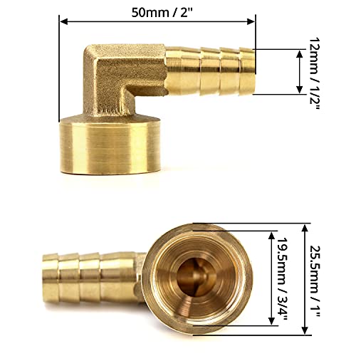 QWORK Giunto a gomito da 90 gradi, Raccordo a gomito in ottone, 12mm x G1/2, 2 pezzi