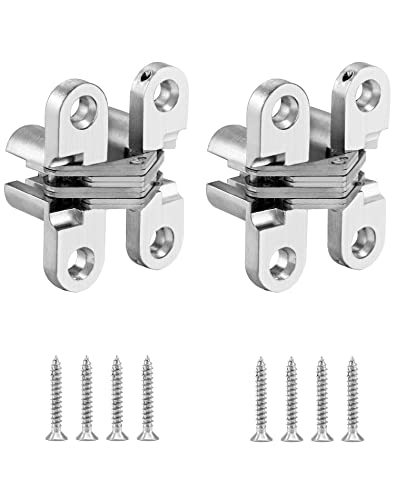 QWORK 2 Pezzi Cerniere Invisibili, Cerniere Nascoste A Croce Per Porte A Soffietto, Viti Incluse, 43.7 mm
