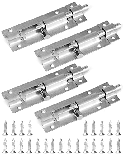 QWORK 4 Pezzi Chiavistello Porta in Acciaio Inox, Catenaccio Porta con Viti per Porta in Legno - 72mm x 35mm