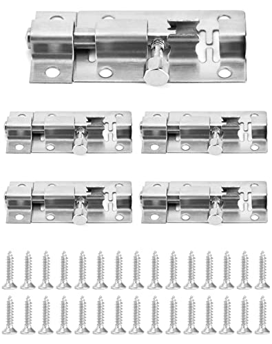 QWORK 5 Pezzi Chiavistello Porta in Acciaio Inox, Catenaccio Porta con Viti per Porta in Legno - 50mm x 27mm