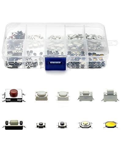 QWORK 250 Pezzi Micro Interruttore A Pulsante 10 Modelli, Micro Tattile Interruttore, Con Scatola In Plastica, Per Chiavi Telecomando Auto