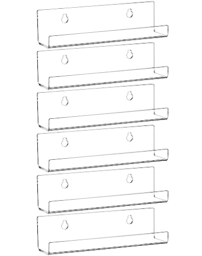 QWORK 6 Pezzi Porta Dischi Vinile di Acrilico Trasparente, Mensola da Muro per Dischi in Vinile, Foto, Libri, Trucco (18 x 4 x 4 cm)