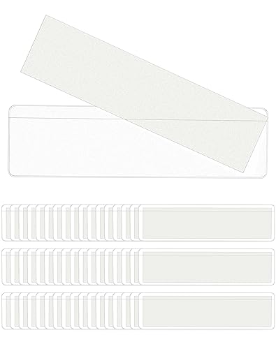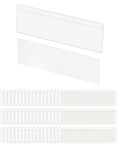 QWORK 52 Pezzi Porta Etichette Adesive, Flessibile e Rimovibile, per Mensole, Tasche per Etichette per Cassetti, Scaffali, Cassette Postali, Classificatori (11 x 3 cm)