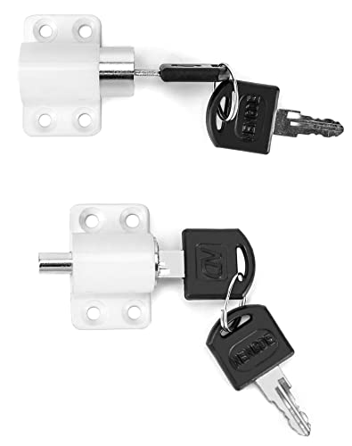 QWORK 4 Pezzi Serrature per Finestre Scorrevoli, Chiavistello di Sicurezza con Chiavi Universali, per Casa e Scuola, Bianco