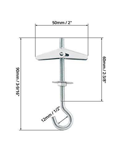 QWORK 12 Pezzi Tasselli A Molla Con Gancio, M5x90mm, Acciaio Al Carbonio, Piante Sospese, Per Soffitti In Cartongesso