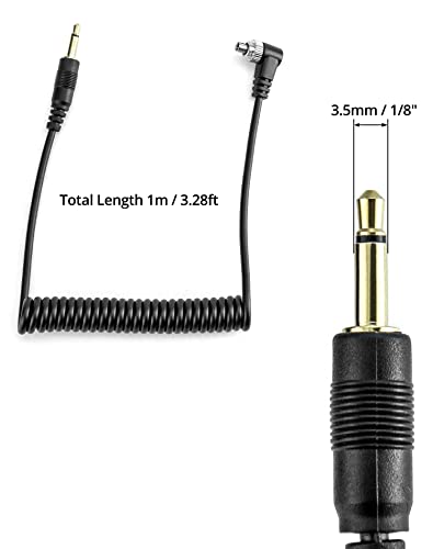 QWORK Cavo Sincro Flash 3,5 mm Maschio con Chiusura a Vite, Cavo a Spirale 30cm - 105cm, Adatto per Nikon Canon