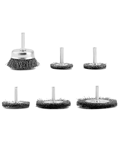 QWORK Set di 6 spazzola per trapano, spazzole metalliche in acciaio al carbonio per trapano, codolo da 1/4" (6 mm), per rimozione vernice, pulizia ruggine e abrasivo