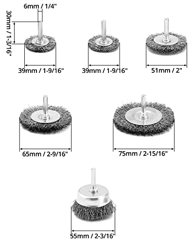 6 dimensioni di spazzole metalliche: tra cui 75 mm * 1, 50 mm * 1,62 mm * 1, 38 mm * 2 Spazzola a ruota metallica e 50 mm * 1 spazzola a tazza metallica.