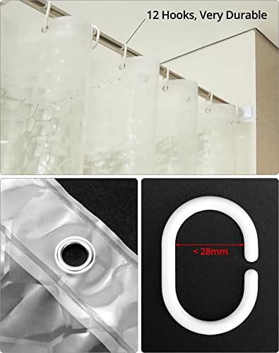 QWORK Tenda Doccia Antimuffa - 180 x 200 cm - Traslucido Effetto 3D - con 12 Gancio in Plastica