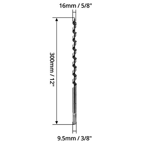 QWORK Trapano a Spirale Punte per Legno, Auger Bit con Codolo Esagonale, Diametro 16mm Legno 300mm, 1 Pezzo