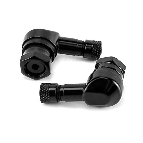 QWORK Valvola del Pneumatico 90 Gradi, Lega di Alluminio Adattatore per Copri Valvole Moto, Nero, 2 Pezzi