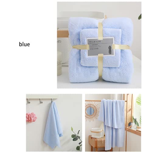 Qyjhska Set Asciugamani,Asciugamani da Bagno,Asciugamano da Bagno Grande 70x140cm,Salviette Piccole 35x75 cm,Asciugamani Viso-Mani in Microfibra in Pile di Corallo,Asciugamani da Bagno (blu)