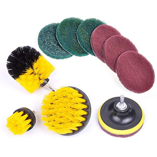 Set di 10 punte per trapano: 3 diverse spazzole in nylon per uso medio (spazzola da 2 pollici, spazzola conica originale da 3,5 pollici e spazzola da 4 pollici), 6 spazzole per la pulizia e un connettore per scrubber. Punta senza fili inclusa.