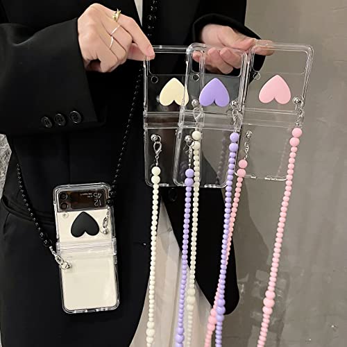 Qywui Custodia per Samsung Galaxy Z Flip 4/Flip 3 con catena lunga, cuori di colore 3D guscio duro antiurto cover protettiva per donne ragazze