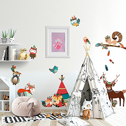 Kina R00430 Adesivo murale per Bambini Wall Art - L'accampamento dei Piccoli Indiani - Misure Foglio 30x120 cm - Decorazione Parete, Adesivi per Muro, Carta da Parati