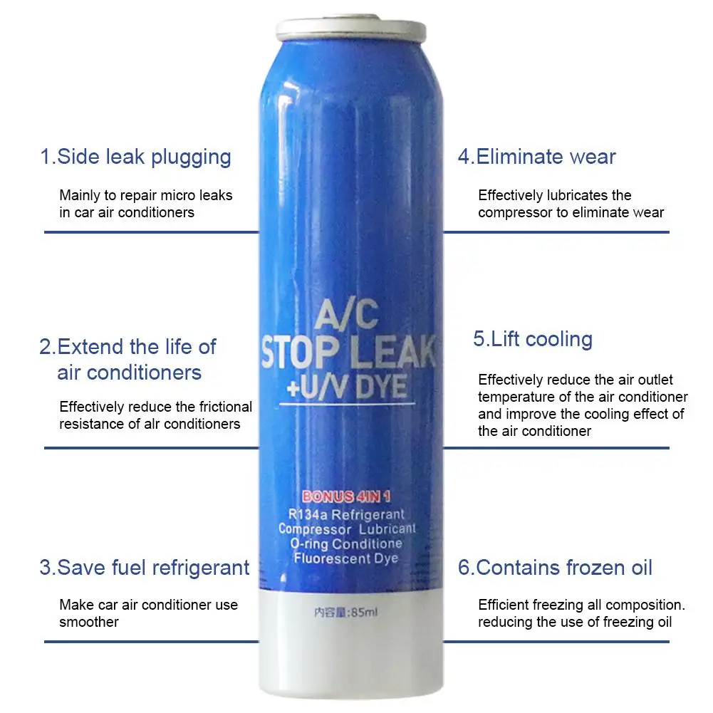 R134a Refrigerant Oil Leak Repair Agent Air Conditioner Plugging Repair Agent Car Fluorescent Leak Detection Elimination Agent