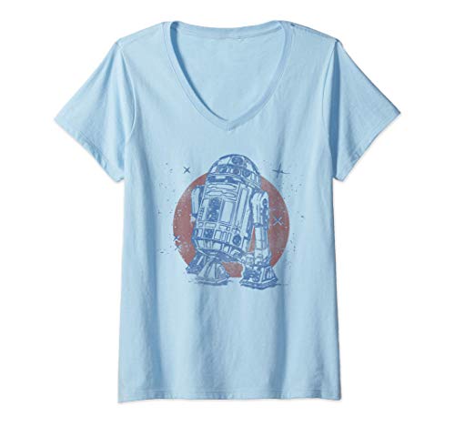 Star Wars R2-D2 Vintage Neon Retro Sparkly Badge Maglietta con Collo a V