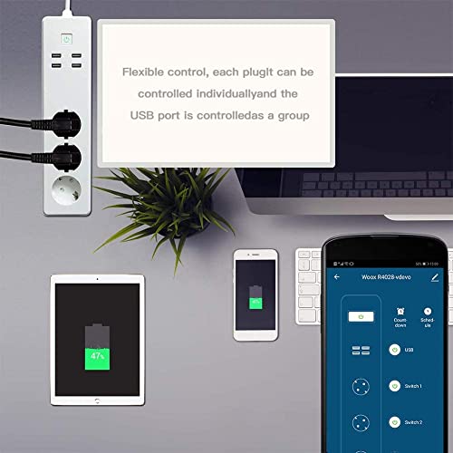 Woox R4028 Smart Multi-Plug, Ciabatta intelligente multipresa WiFi con 3 prese EU e 4 porte USB, compatibile con Alexa, Google Home e IFTTT, Bianco