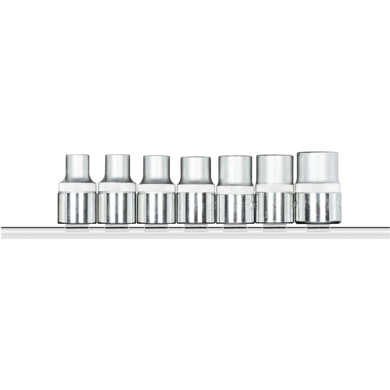 Chiavi a bussola 1/2, TX, Ad azionamento manuale, con zigrinatura longitudinale, Cromatura opaca sul lato dei azionamento, lato di attacco lucidato, Attacco quadro incassato secondo DIN 3120 - C 12,5, ISO 1174, con sede fermasfera, Acciaio al cromo-vanadio, Acciaio cromo-vanadio Elenco dei pezzi (testo) Schraubendrehereinsatz TX E10 E11 E12 E14 E16 E18 E20 Paese di origine Taiwan Lunghezza totale 200 mm Peso netto [kg] 0,46 kg Azionamento quadrato [metrico] 12,5 mm Certificato VDE 0 Registrazione REACH disponibile 0 Dimensioni dell'imballaggio 1 Quadrato di azionamento [imperiale] 1/2 Contenuto (numero di pezzi) 7 tlg.