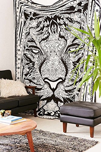 Raajsee Arazzo Mandala bianco e nero indiano cotone appeso alla parete copriletto/hippie arazzo nero/bohemien Elefante dormitorio Decor Arazzi/Boho Queen Copriletto 210x220cms/Un regalo