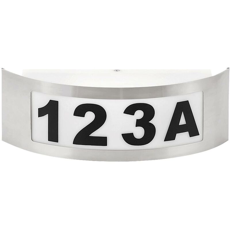 Luce esterna Innsbruck numero di casa in acciaio inox colore chiaro L: 9cm B: 31,8cm H: 10cm IP44 metallo / plastica Dimensioni in mm: Altezza: 100, Larghezza: 318, profondità: 90, 0.5 Lampade: br> di peso in kg NO tipo di lampadina / versione: E27 informazioni sulla lampada / potenza massima: E27 MAX 14W classe (a ++ a e): a ++ - e di riduzione luminosità: YES di protezione: IP44 alloggio materiale: di plastica il materiale tonalità di vetro metallo / plastica Colore: color acciaio inox
