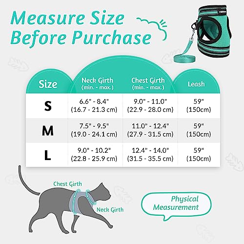 Rabbitgoo Pettorina per Gatti con Guinzaglio, Imbracatura per Gatti Extra Piccoli, Set di Pettorina per Cuccioli, Regolabile Ultra-Leggero Morbido per Passeggio, Corsa(M, Verde Chiaro)