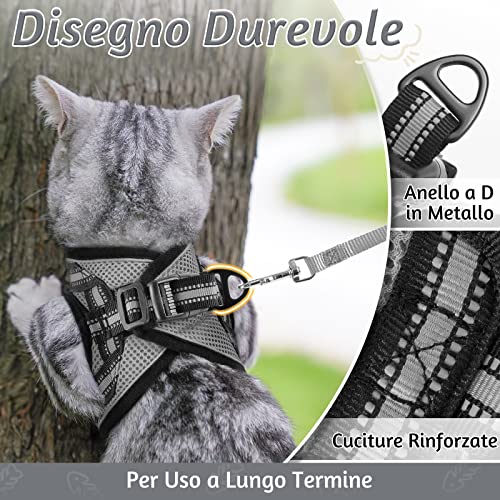 Design Anti-Fuga: Questo set di pettorina con guinzaglio per gatti presenta il blocco a strappo e il design della fibbia posteriore per una chiusura sicura per impedire al gatto di scivolare fuori. E il design in stile gilet protegge il collo del tuo gatto dall'attrazione e dalla tensione di un colletto. Ora puoi condividere piacevoli passeggiate, attività fisica e tempo libero con il tuo gattino