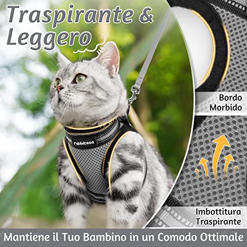 Rabbitgoo Pettorina per Gatti con Guinzaglio, Imbracatura per Gatti Extra Piccoli, Set di Pettorina per Cuccioli, Regolabile Ultra-Leggero Morbido per Passeggio, Corsa(M, Grigio)