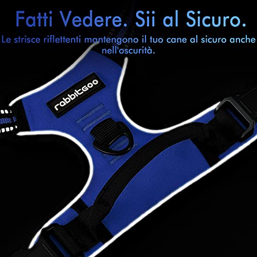 Rabbitgoo Pettorina Cane Taglia Grande, Pettorina Cane ad h Regolabile con 2 Ganci in Metallo, Pettorina per Cani Anti Tiro Riflettente, Imbracatura Cani Traspirante per Addestramento Corsa(L, Blu)