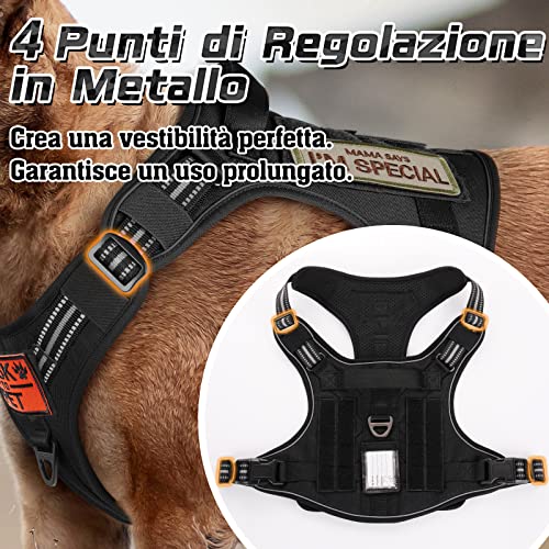 Materiale Durevole: La pettorina per cani da addestramento è realizzato in resistente tessuto oxford 900D per l'uso quotidiano di esercizi ad alta intensità. Il manico rinforzato presenta un'imbottitura più spessa e più ampia per il massimo comfort e un controllo extra quando il tuo cane entra ed esce