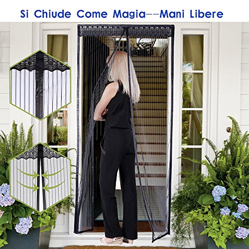 Rabbitgoo Zanzariera Magnetica per Porte Zanzariera Porta Nera 100x210 CM con Calamita e Velcro, Entra l'Aria Fresca filtrando Fuori Gli Insetti (per Porte Misura Max 94x208 CM)