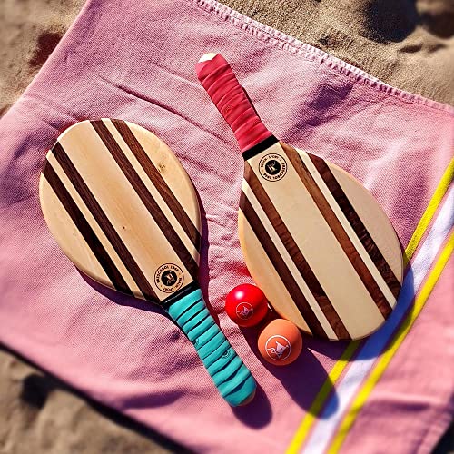 Racchette da spiaggia Premium | Frescobol brasiliano | Set Racchetta Duo Color Tropical Green&Red Pastel