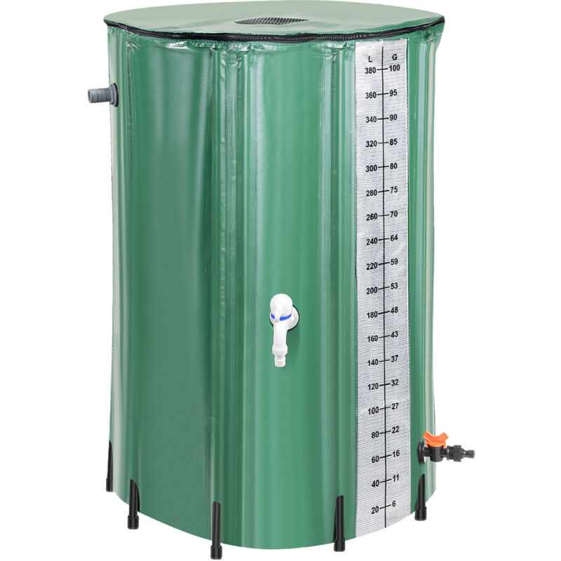 Descrizione del prodotto: L'acqua piovana è ideale per diversi usi. tra cui gli orti biodinamici e biologici. le aiuole per le colture. le piante tropicali da appartamento come felci e orchidee e per la pulizia delle finestre di casa. Il nostro barile per la pioggia pieghevole (100 galloni) è uno strumento indispensabile per raccogliere l'acqua piovana. È sufficiente posizionare il barile sotto un tubo di scarico per raccogliere l'acqua piovana naturale. Caratteristiche principali del prodotto: Economico ed ecologico: risparmia acqua e protegge l'ambiente. Il serbatoio di raccolta dell'acqua piovana consente di raccogliere l'acqua piovana per innaffiare il giardino. Robusto e durevole: 9 aste di sostegno rendono la botte più stabile e il materiale in PVC è resistente anche nei freddi mesi invernali. Pratico: il barile è dotato di una scala chiara per riconoscere la capacità del serbatoio. La valvola di scarico sul fondo può essere collegata a un tubo flessibile per uno svuotamento