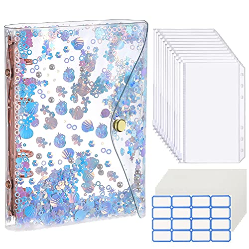 COPERTINA DECORATIVA: La copertina trasparente è imbottita dai lustrini colorati in forma di conchigline, di fiori e di dischettini, che aggiungono una certa decorazione al raccoglitore, inoltre impediscono adeguatamente la vista altrui e proteggono le informazioni private dei contenuti.