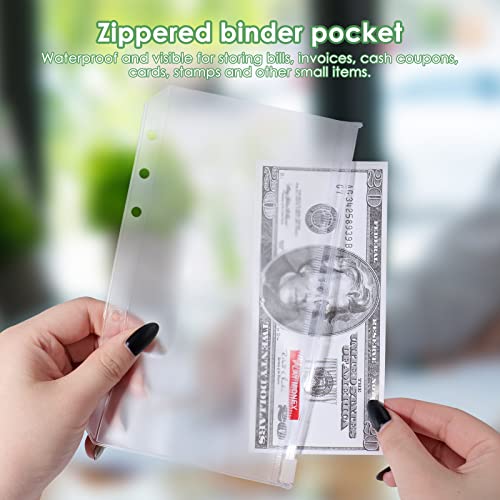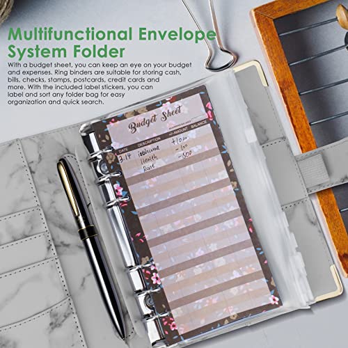 Raccoglitore ad 6 Anelli, Raccoglitore Notebook A6, Raccoglitore Bilancio in Pelle Pu con 12 Buste Trasparenti + 12 Fogli Budget + 1 Etichetta Adesiva + 2 Adesivi Inglesi + 1 Righello