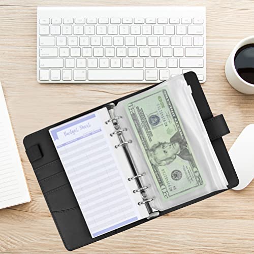 【Otterrai】 1 raccoglitore in pelle nera A6 + 8 sacchetti trasparenti con cerniera + 12 fogli economici + 2 etichette adesive per aiutarti a pianificare i tuoi soldi in modo ragionevole e lasciare che i soldi siano nelle tue mani