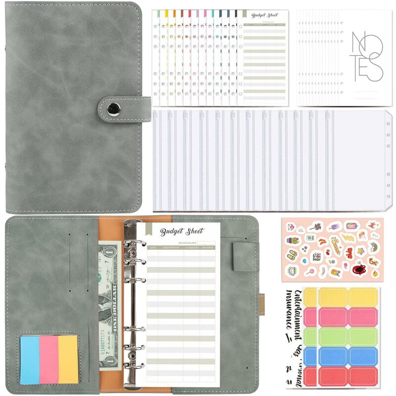 Descrizione del prodotto Materiale: Quaderno A6: pelle PU Tasche raccoglitore: PVC Fogli budget: carta. Contenuto della confezione: 1 quaderno A6. 12 buste con zip. 12 fogli budget. 14 piani mensili. 2 etichette adesive vuote. 2 x adesivi inglesi. 1 x adesivo cartone animato. Precauzioni speciali: A causa dei diversi metodi di misurazione, l'errore entro 1-2 cm da questa dimensione è normale.< br /> L'effetto di questa immagine è solo di riferimento e l'effetto finale dipende dal prodotto reale. A causa di fattori oggettivi come lotti di produzione, macchinari e attrezzature, è difficile evitare o apparire piccoli errori come differenze di colore, posizione e dimensioni. I problemi di cui sopra sono normali e non fanno parte del servizio clienti.