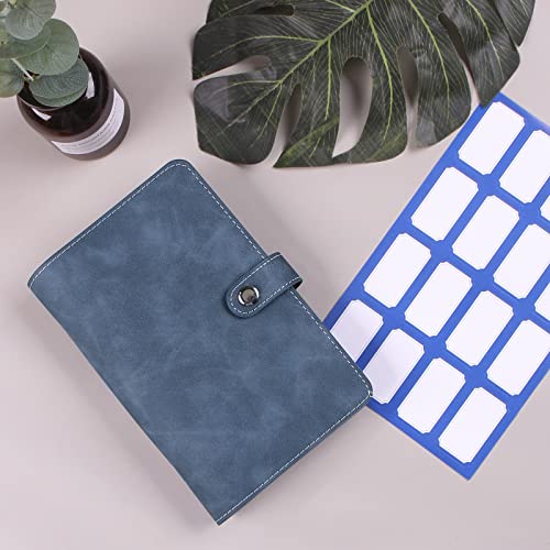Raccoglitore ad Anelli A6, Portadocumenti in PU Pelle, 6 fori, con 12 Buste in Plastica Trasparente e 16 Adesivi per Budget Planner, Vari Scomparti, Multifunzionale,Blu