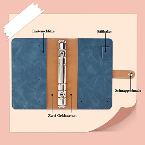 A6 raccoglitore ad anelli,Quaderno ad anelli, con 12 buste in plastica trasparente e adesivi per etichette autoadesivi,per Budget di Contanti Risparmio di Denaro per Studente Ufficio Scuola