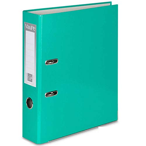 Raccoglitore in cartone formato A4, largo 75 mm, con meccanismo a leva, per documenti. Leva in metallo, da premere con un dito. Per la scuola o per l'ufficio 5 x Turquoise
