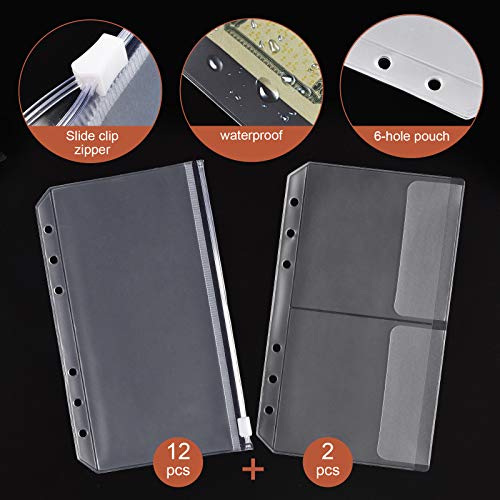 Sistema Cash Budget Include: 1 x raccoglitore per notebook in pelle PU, 12 x buste con cerniera A6, 2 x buste per banconote A6, 2 fogli (20 pezzi in totale) etichette autoadesive.