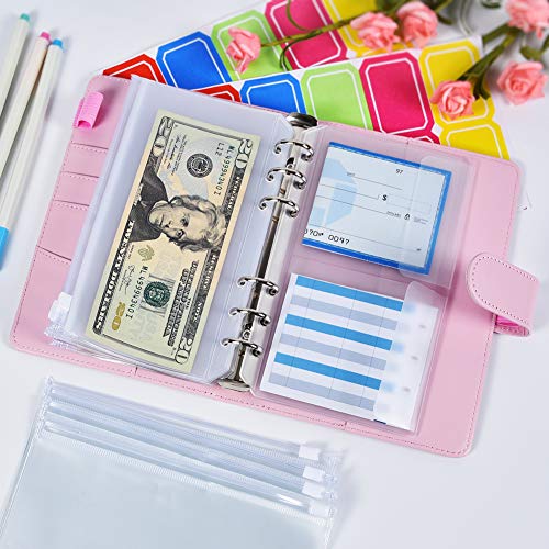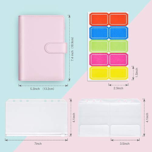 Raccoglitore documenti,14 tasche A6 con custodia in pelle per quaderni, cash stuffing, raccoglitore documenti senza anelli, raccoglitore ad anelli trasparente, per agenda con etichette (rosa)