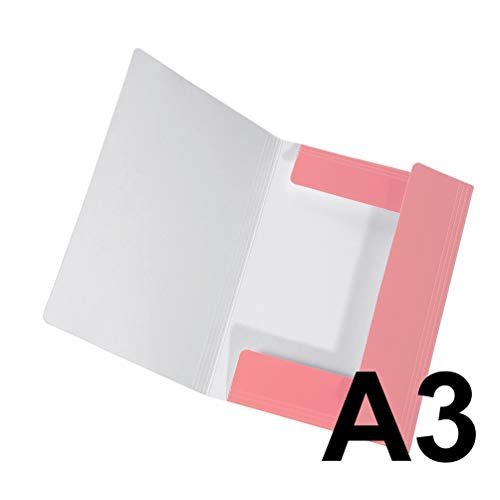 Raccoglitore originale FALKEN PastellColor, in cartoncino molto robusto, con 3 alette ed elastico, in formato DIN A3, colore rosa fenicottero pastello, ideale per le materie artistiche a scuola