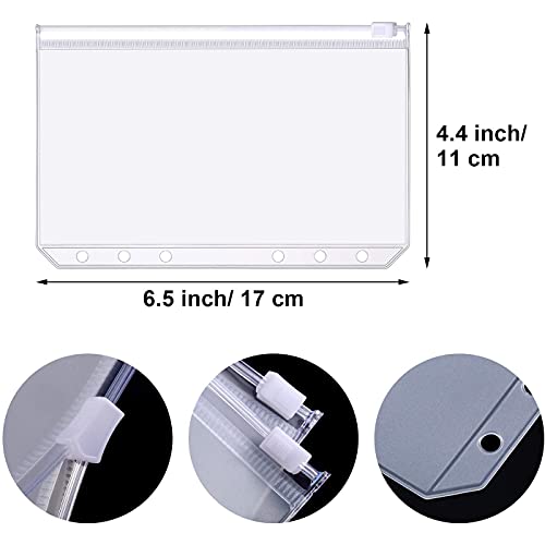 A6 Raccoglitore Tasca 6 Fori Formato Sciolto Borsa Cerniera Plastica Impermeabile con Chiusura Lampo Cartelle per Casa Ufficio Forniture Scolastiche Documenti Quaderni e Carte (15 Pezzi)