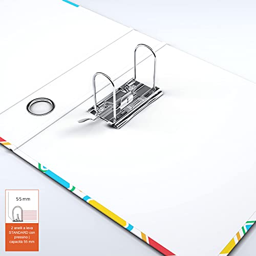 Set dai colori brillanti, pensati per rendere positivo l'ambiente dove lavori e vivi. L'interno può contenere fogli e buste A4, può essere personalizzato con meccanismo a 2 o 4 anelli