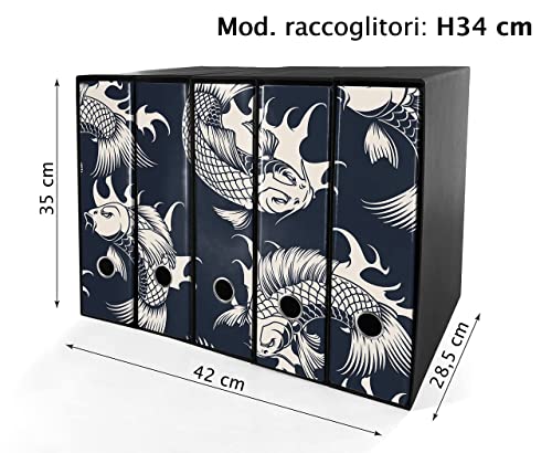 Il Set con raccoglitore alto 34 cm, completo di 5 custodie è alto 35 cm