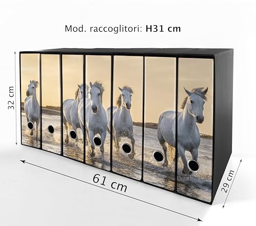 Il Set con raccoglitore alto 31 cm, completo di 7 custodie è alto 32 cm