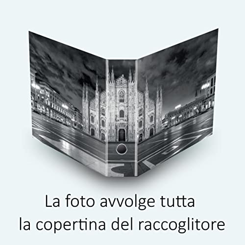 L'immagine della copertina avvolge tutto il lato esterno di ogni raccoglitore e crea la composizione con un'immagine del Duomo di Milano