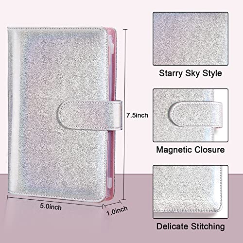52 raccoglitori ad anelli, formato A6, in pelle PU, con 8 buste in plastica, 40 fogli di budget, 2 adesivi per etichette e 1 penna (argento)