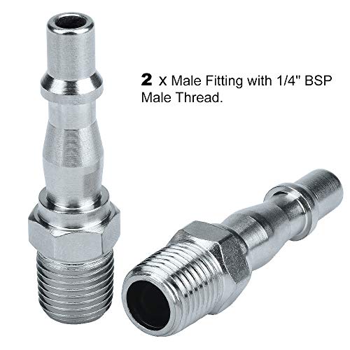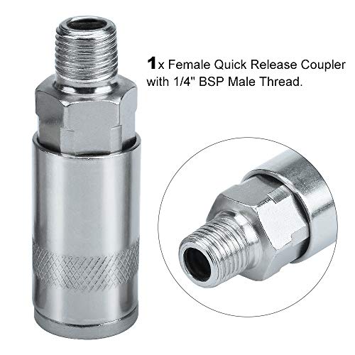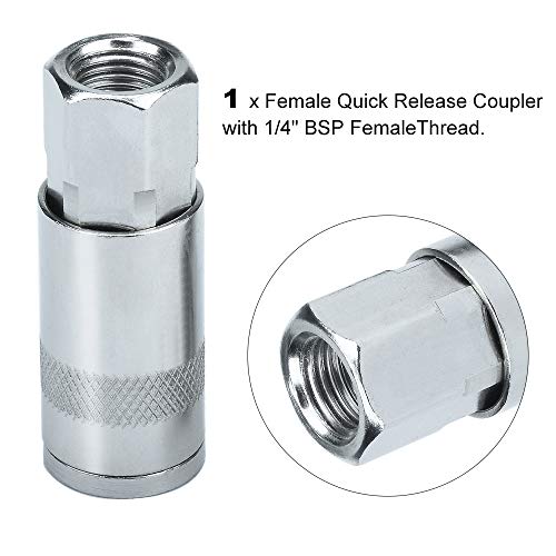 Funzione: gli accoppiatori a sgancio rapido a molla per l'uso sul lato del compressore hanno una valvola integrata per spegnere l'aria quando si cambia tra gli strumenti. Finitura placcata in zinco per resistere alla ruggine e alla corrosione